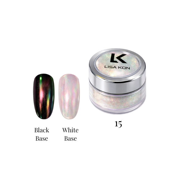 LisaKon Chrome Powder is crafted from ultra-fine cosmetic-grade pearl pigments that melt seamlessly into the cured top coat.